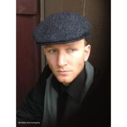 Flat Cap Fine Donegal Tweed In Blue With Color Flecks (IR95)