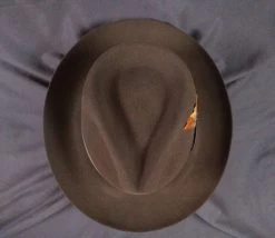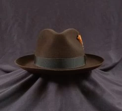 In the elongated pinch front C-Crown shape, this hat gives a more modern look to the gangster hat of the 30’s.