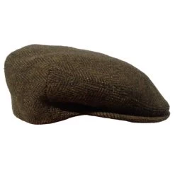 Irish 100% Donegal lambswool tweed grey herringbone ivy flat cap by Jonathan Richard of Dublin, Ireland.