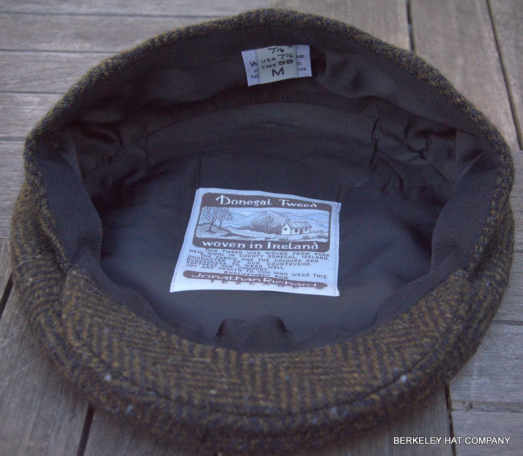 This Irish brown-green/black herringbone 100% Irish wool tweed ivy flat cap is a little lighter than our heaviest tweeds.