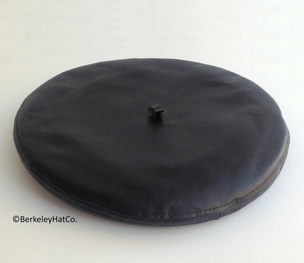 This leather Beret comes with a satin lining and a pull cord in the back for size adjustment.