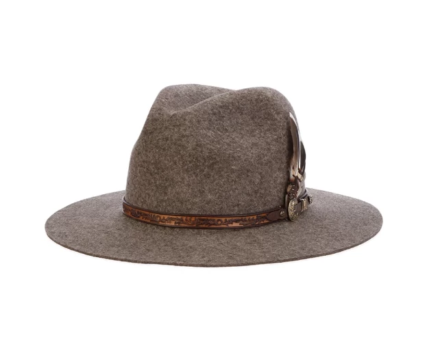 Biltmore’s Messenger fedora in the brown heather color “brindle-mix”.