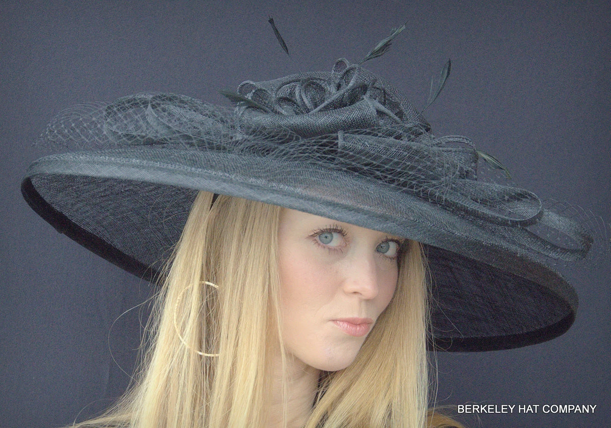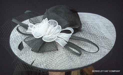 Spectacular sinamay derby hat has loops and bows of sinamay straw with netting.