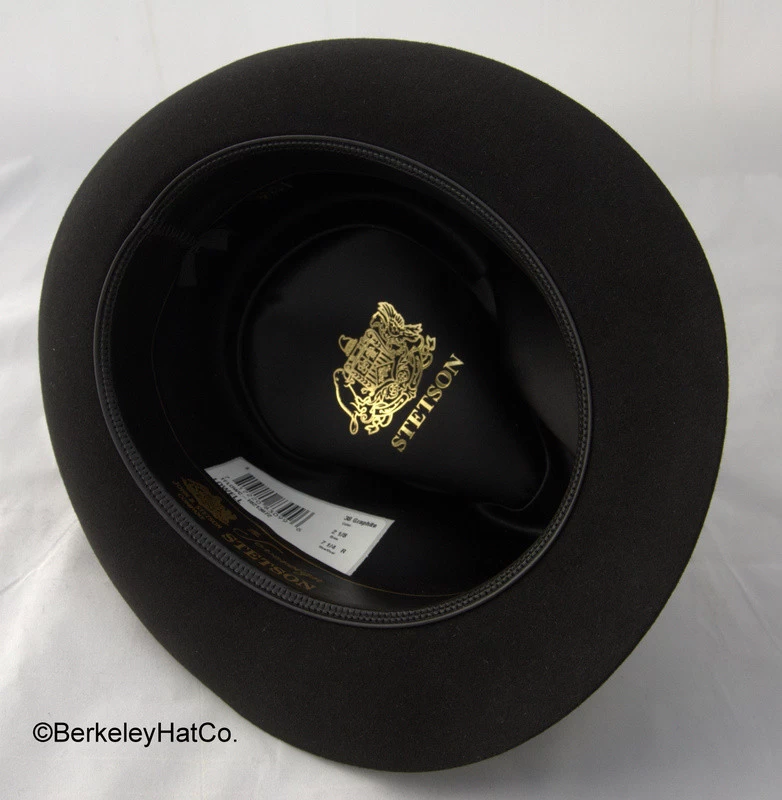 Stetson Sovereign “Lowell” fedora in graphite (dark grey) in suede finish.