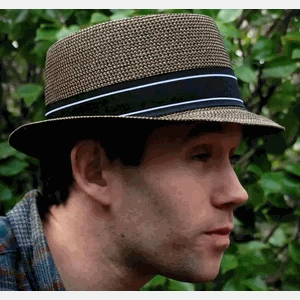 Straw pork pie hat in a strong malleable paper braid.