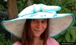 On Sale – Women’s summer wide brim flower print cloth covered straw sun hat with self bow.